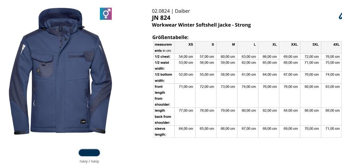 Größen: S - M - L - XL - XXL - 3XL - 4XL